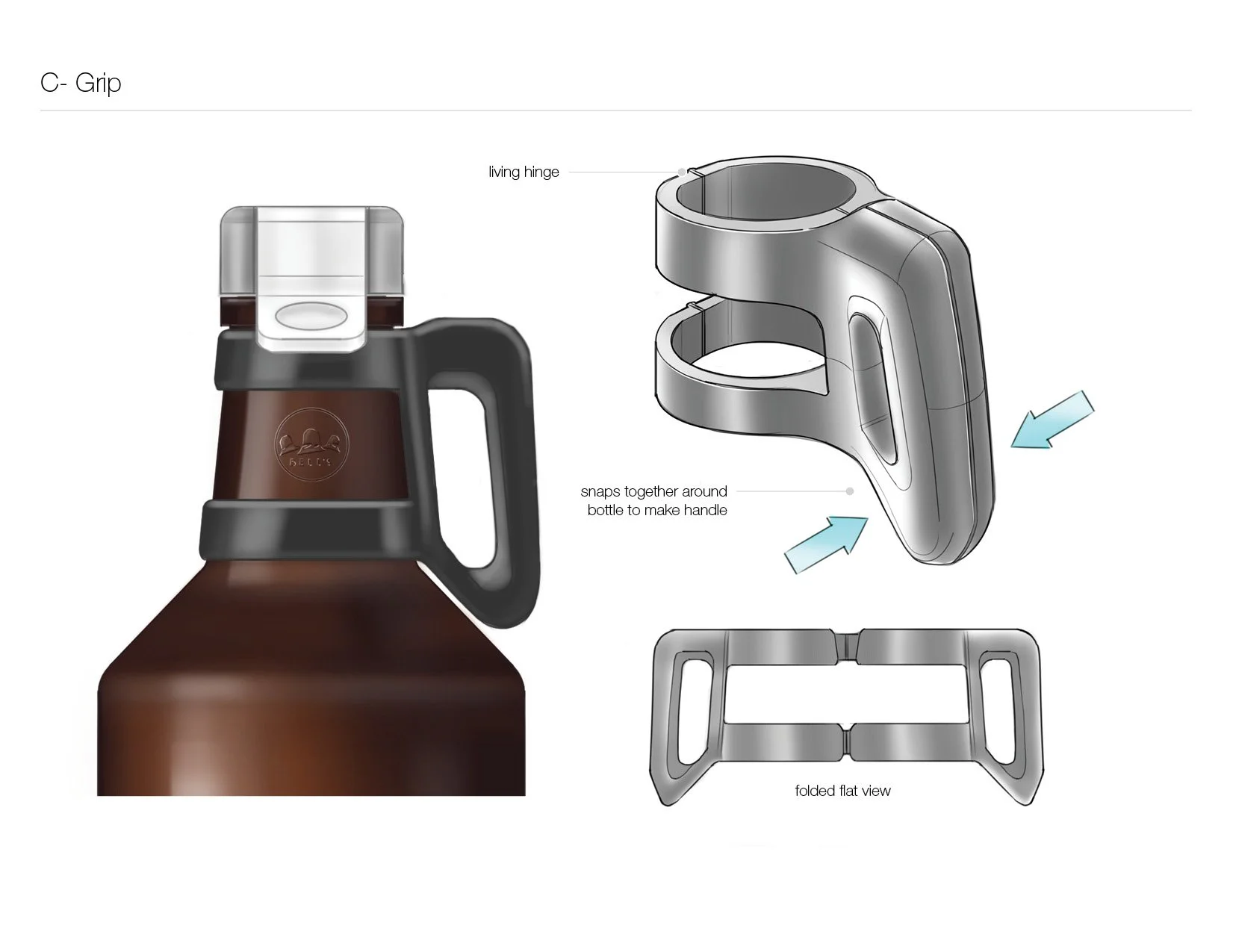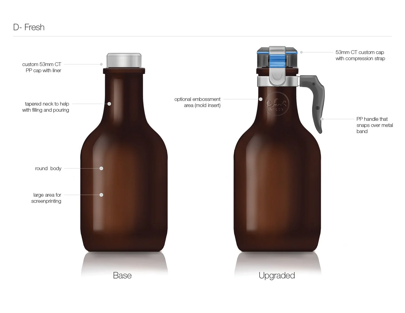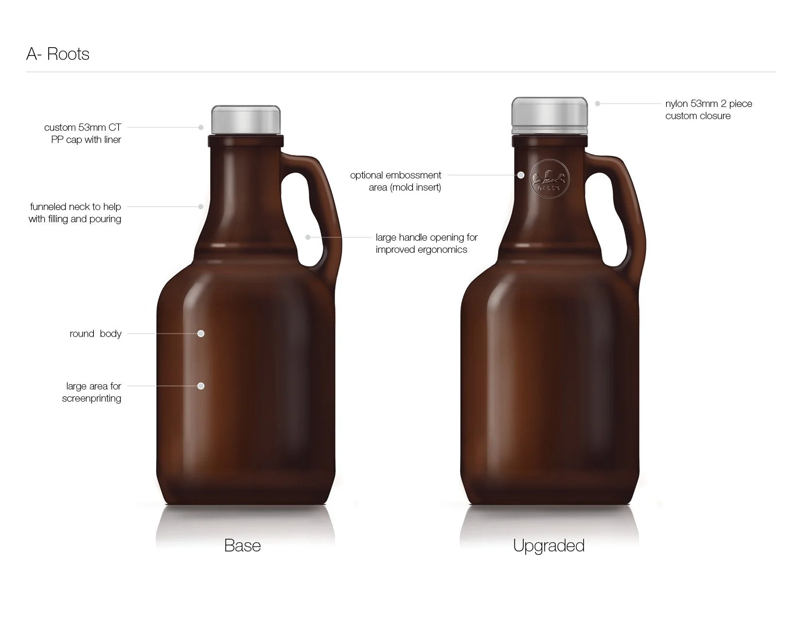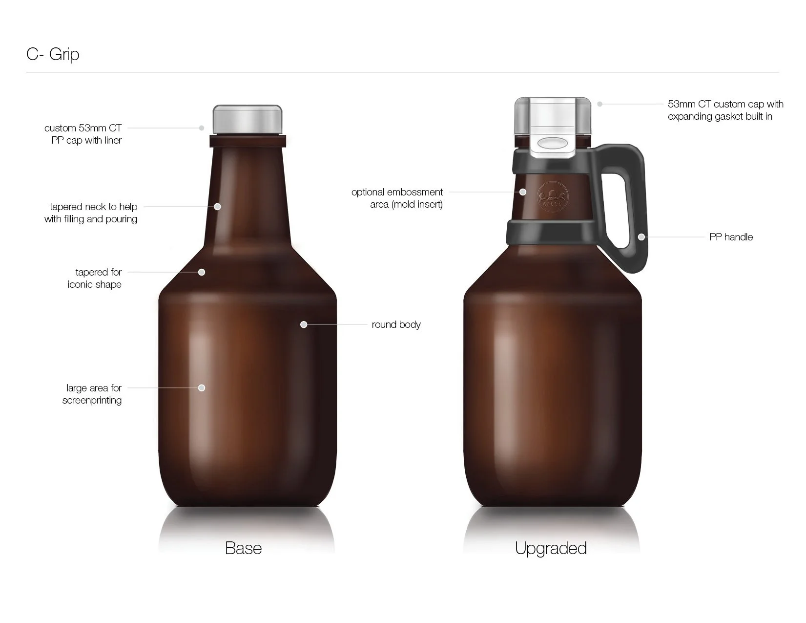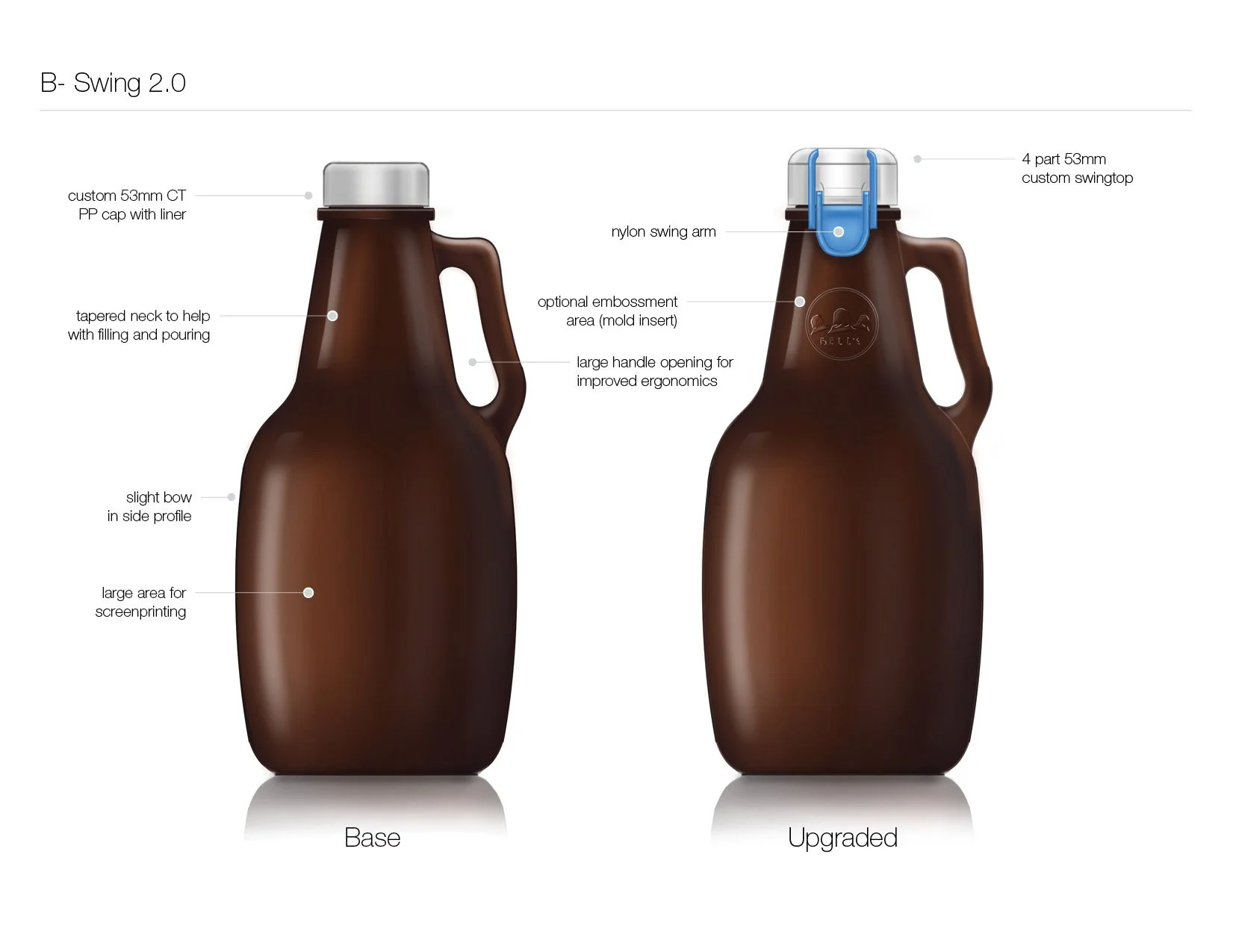 While at Studio One Eleven we partnered with Grandstand, a glass decorator in Kansas, to develop a custom 64oz growler package to sell with their printing services. My role on this project was design lead - guiding the design all the way into tooling.