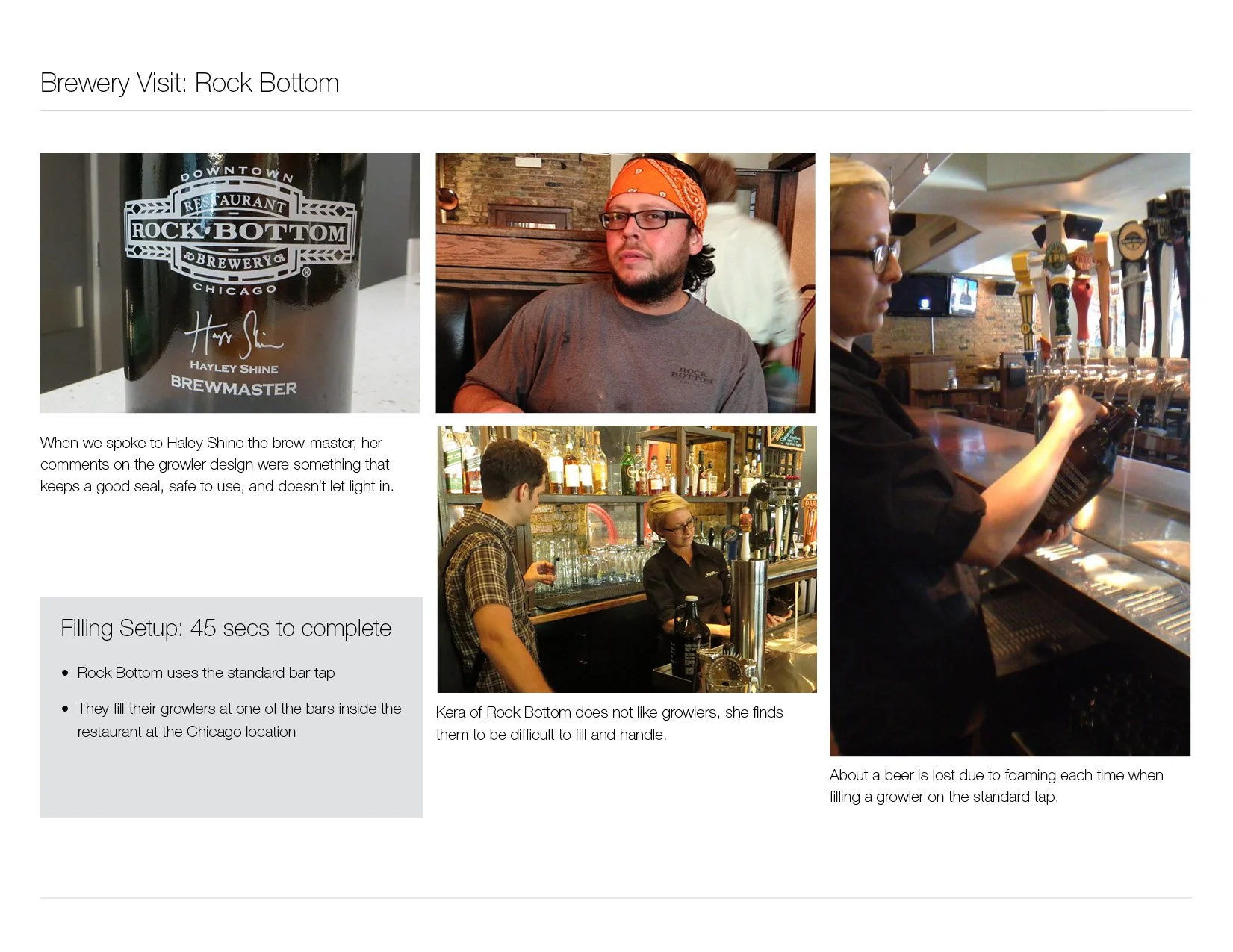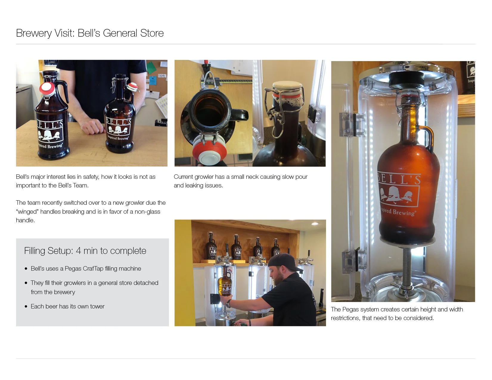 At the initial phase of our project, myself and other members looked at existing growlers on the market and setup onsite meetings with local breweries, to better understand some of the pinch points when filling a growler. The learnings were essential to the project and from there we we're able to setup parameters to design around.